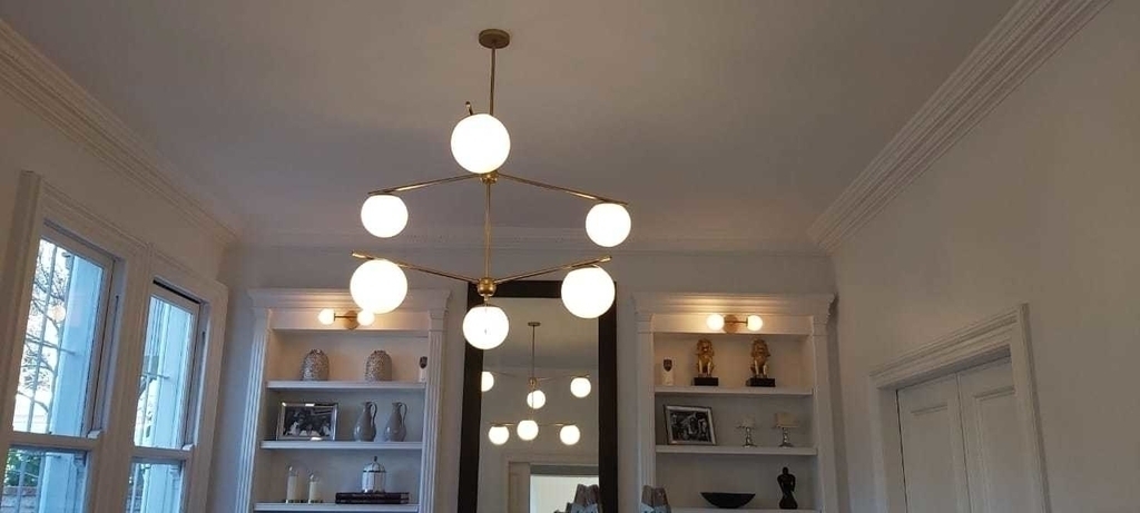 DESCRIPCIÓN: Lámpara realizada en hierro con capacidad para 6 luces. Con tulipas de vidrio opal y floron.