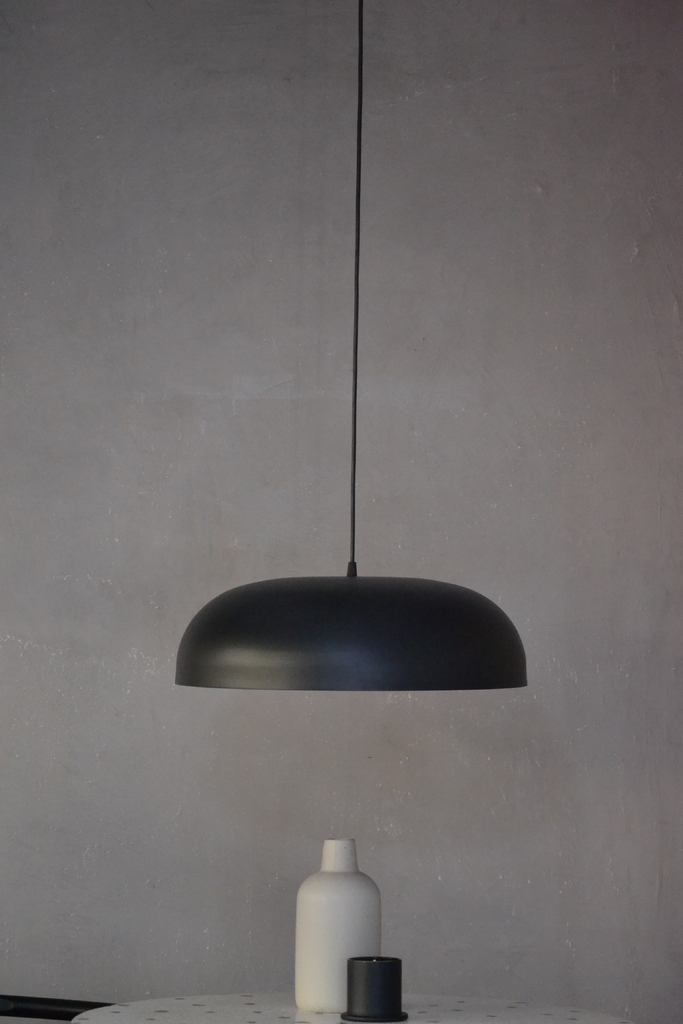 Lampara de techo apta para una luz. Incluye cable de 1 m. y floron redondo de 12cm. Terminacion pintado a fuego.