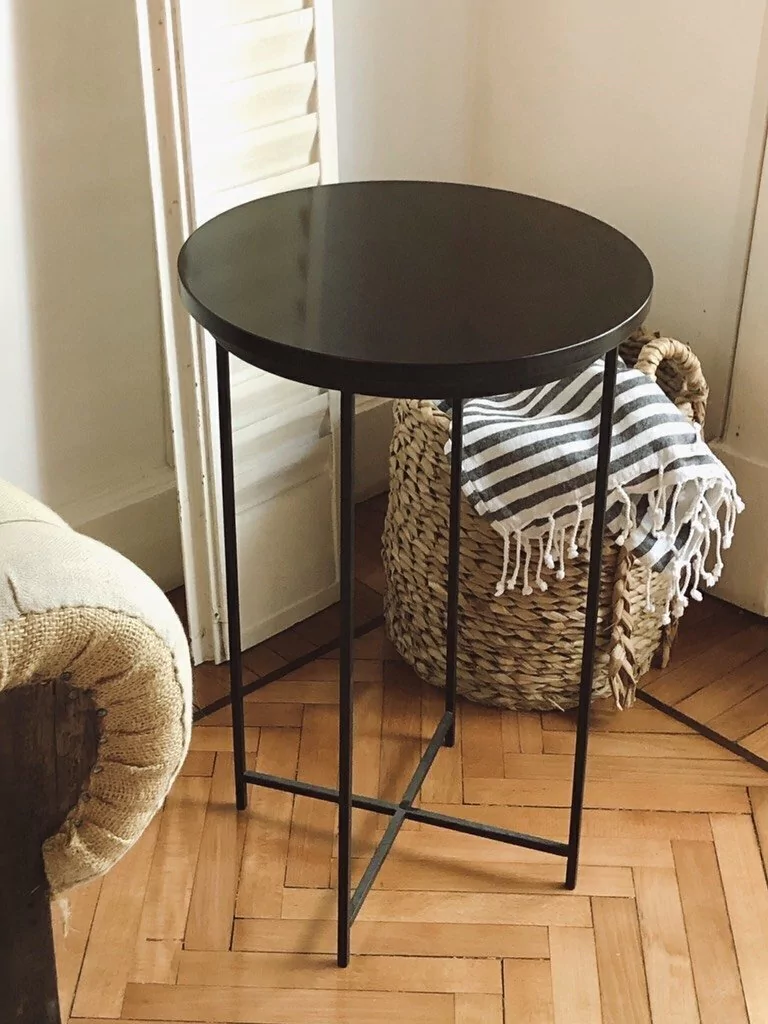 DESCRIPCIÓN: Mesa de arrime realizada en hierro, con tapa de madera laqueada.